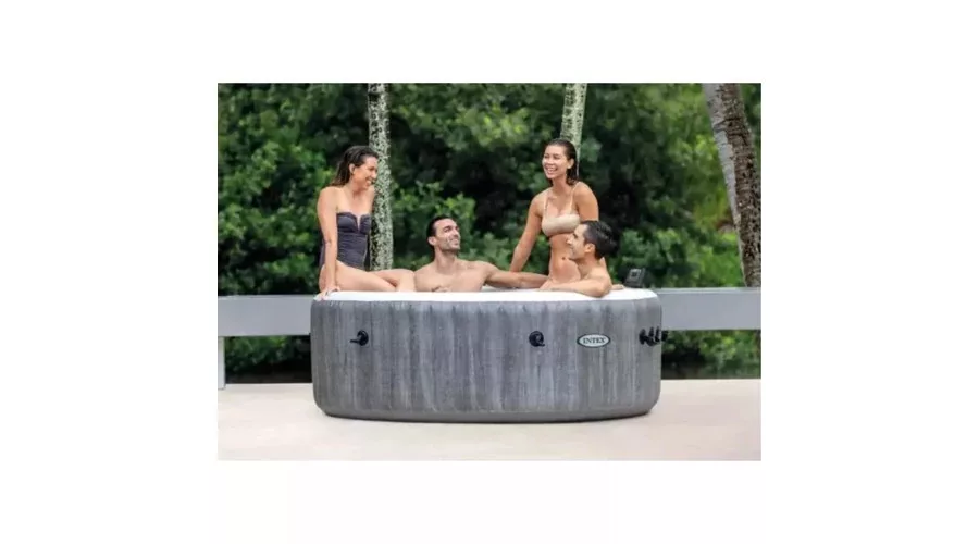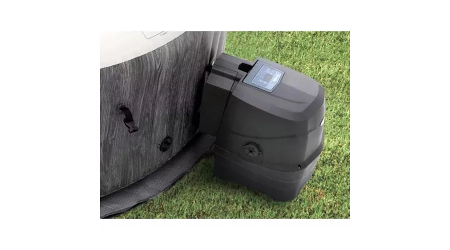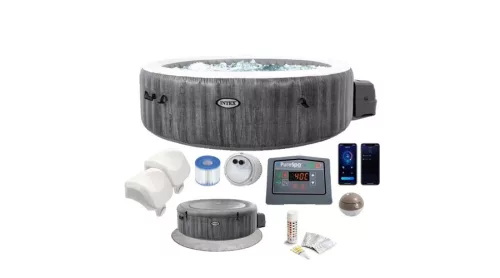 Az Intex PureSpa Greywood Deluxe egy 6 személyes, kerek felfújható jakuzzi, amely 170 légfúvókával biztosít körkörös buborékmasszázst. A hőmérséklet 10 és 40 °C között állítható, a működtetés kivehető, vezeték nélküli érintőkijelzős panellel vagy Intex Link alkalmazáson keresztül is történhet. A beépített Hard Water Treatment rendszer a vízkő kialakulásának csökkentését szolgálja. A SuperTough™ háromrétegű anyag és a Fiber-Tech® szerkezet a stabil falak kialakítását támogatja. A jakuzzi integrált felfújó rendszerrel rendelkezik, valamint zárható, hőszigetelt fedéllel érkezik. A kb. 1 098 liter vízkapacitású modell teraszra vagy kertbe is elhelyezhető, szezonális vagy akár egész éves használatra. A buborékfunkció a pihenést szolgálja, rendszeres használata hozzájárulhat a komfortérzet növeléséhez.