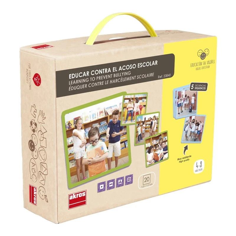 Az Képkártyák – Zaklatás megelőzése AKROS egy oktató eszköz, amely segíti a gyermekeket az iskolai zaklatás és erőszak felismerésében és megelőzésében. A készlet különböző helyzeteket mutat be, amelyek során a gyerekek megérthetik a helyes és helytelen viselkedésformákat. A kártyák segítenek fejleszteni az empátiát, a konfliktuskezelési készségeket és a társas kapcsolatok tudatosabb kezelését.
