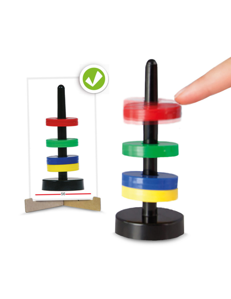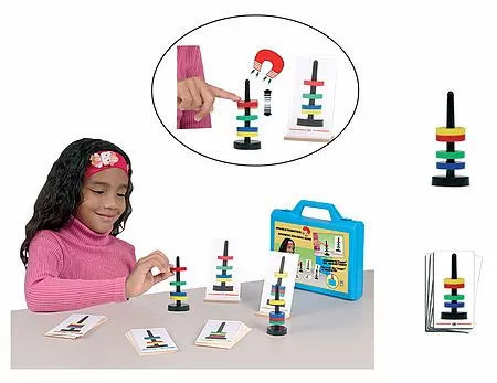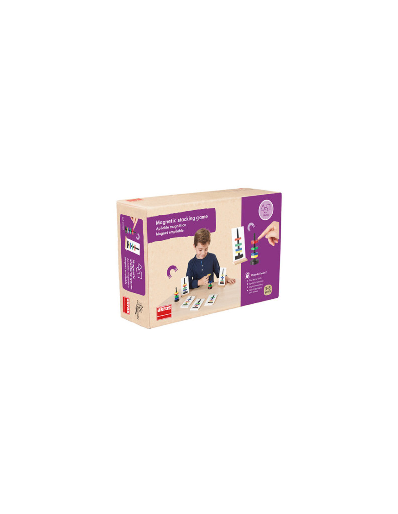A Mágneses Torony AKROS egy izgalmas oktató játék, amely a gyermekek számára lehetőséget biztosít a mágneses erők megértésére. A játék színes mágneses korongok és különböző kártyák segítségével segít a gyerekeknek a térbeli gondolkodás fejlesztésében, miközben a mágnesek vonzó és taszító hatásait is felfedezhetik. A játékos tanulás segíti a koncentrációt, a figyelmet, valamint a finommotorikus és problémamegoldó készségeket.