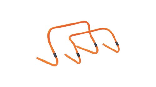 Az állítható műanyag edzőgát praktikus eszköz koordinációs és gyorsasági gyakorlatokhoz, amely gyerekek és felnőttek számára is biztonságosan használható különböző edzéshelyzetekben.