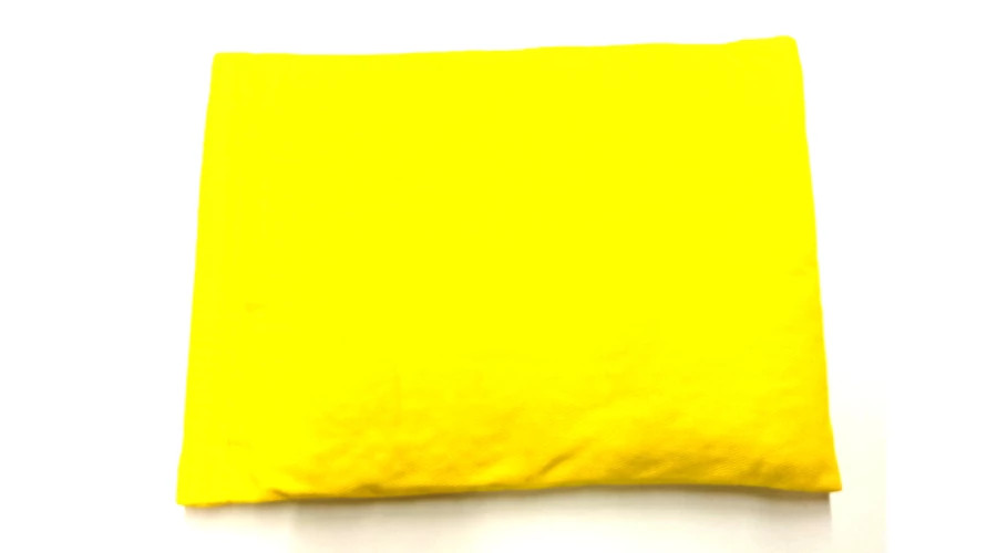 Textil anyagból készült, sárga színű babzsák alapvető mozgásos gyakorlatokhoz.
