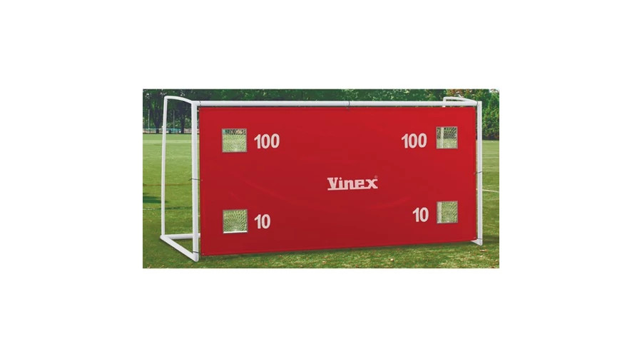 A VINEX célzókeret 3×2 méteres kézilabda kapukhoz készült, PVC bevonatú szövet alapanyagból. A célzófelületen kialakított 22×22 cm-es nyílások körül fehér szövetszegély található, amely a tartósságot szolgálja, míg a teljes keretet körbefutó, 5 cm széles piros ponyvaszegély megerősített kialakítást biztosít. A hátoldalon elhelyezett négy hálózseb lehetővé teszi, hogy a kapura lőtt labdák könnyen visszaszerezhetők legyenek. A célzókeret rugalmas zsinórokkal gyorsan és egyszerűen rögzíthető a kapukerethez, így a felhelyezés és eltávolítás nem igényel külön szerszámot. A lyukaknál alkalmazott háló 3 mm szálvastagságú, 4×4 cm lyukbőségű kialakítással készül. A célzókeret lövésgyakorlás során használható kiegészítő, amely segíthet a célzott dobások gyakorlásában és a pontosság fejlesztésében, jól illeszkedve edzésekhez és gyakorló feladatokhoz.