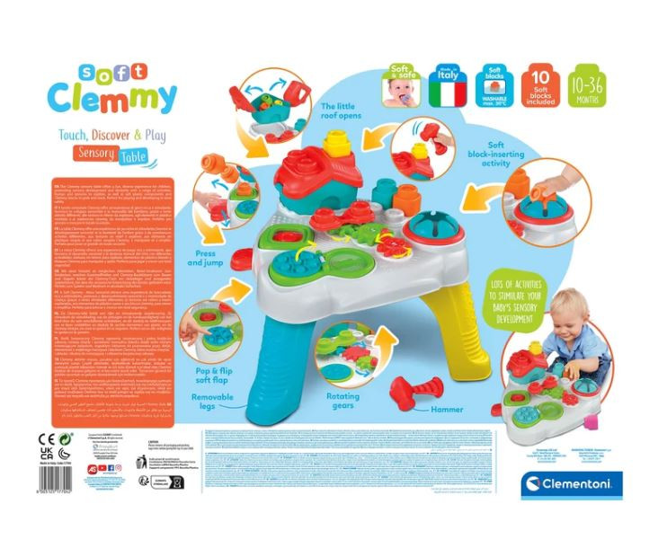 A Clemmy érzékelést fejlesztő asztalka színes, puha elemeivel és mozgatható játékrészeivel játékosan ösztönzi a kicsik érzékszervi és mozgásos fejlődését.
