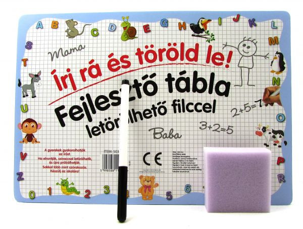 • Tartalom: 1 db fejlesztő tábla, 1 db letörölhető filctoll, 1 db szivacs