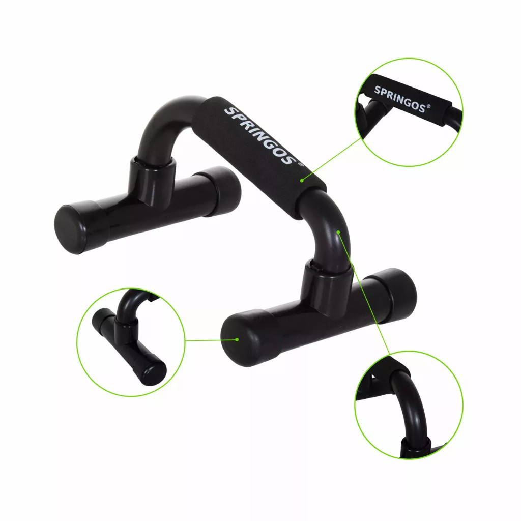 Ez a masszív, szivacsbevonatú fogórésszel ellátott Springos fekvőtámasznyomó kímélheti a csuklót és az ujjízületeket, miközben kényelmesebb testtartást biztosíthat a fekvőtámaszok végzése közben.