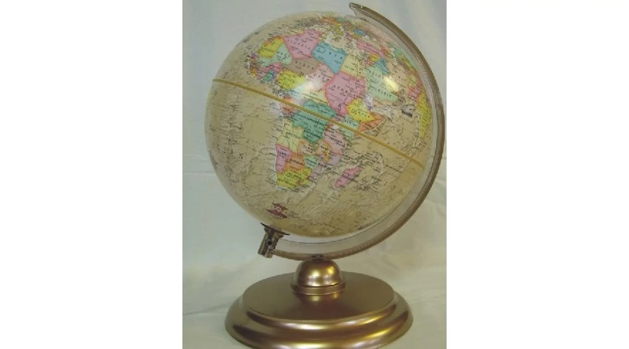 A 25 cm-es antik politikai földgömb különleges megjelenésével a klasszikus térképek hangulatát idézi, miközben a mai országhatárokat ábrázolja. Az antik színezés elegáns, meleg tónusokat ad a gömbnek, így dekorációként is jól mutat íróasztalon, nappaliban vagy tanulószobában. Forgatható kialakítása kényelmes használatot biztosít, a 25 cm-es méret pedig könnyen olvashatóvá teszi a megjelenített adatokat. Mivel nem átvilágító típus, a térkép állandóan az antik színhatású politikai megjelenést mutatja. Magyar gyártású, tartós és igényes földgömb, amely praktikus eszköz lehet tanuláshoz és földrajzi áttekintéshez.