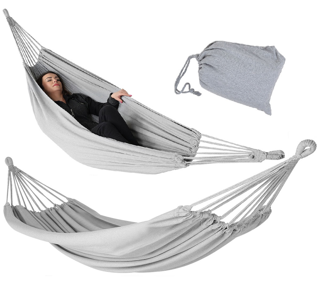 A Relax Gray függőágy kényelmes és strapabíró pihenőhely, amely légáteresztő anyagból készült, így ideális kikapcsolódást nyújt otthon vagy utazás során.