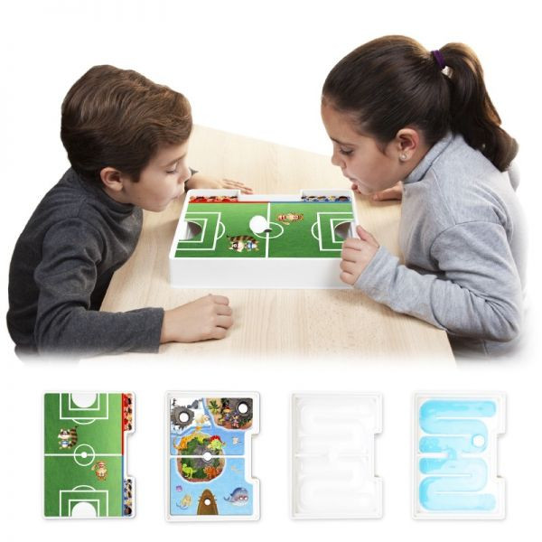 A 4 az 1-ben összeállítás játékos formában kínál lehetőséget a légzés tudatos irányításának gyakorlására. A különféle játéktáblák során a gyerekek a labda mozgatásával olyan feladatokkal találkoznak, amelyek során a légzés erősségének, intenzitásának és adagolásának kontrollálása válhat tudatosabbá. A játékok egymástól eltérő kihívási szintet kínálnak, így a légzés szabályozásával kapcsolatos készségek többféle helyzetben gyakorolhatók. A készletben szereplő változatos pályák – például a foci, a kincskeresés vagy az akadálypálya – egyszerre nyújtanak élményt és fejlődési lehetőséget. A használati módok könnyen követhetők, a játékok akár egyénileg, akár kiscsoportban is játszhatók. A vízzel töltött tábla további élményt jelent, amely még nagyobb légzéstechnikai kontrollt igényelhet a labda pályán tartása során. A termék műanyagból készült, tartozékai könnyen tárolhatók a mellékelt táskában.