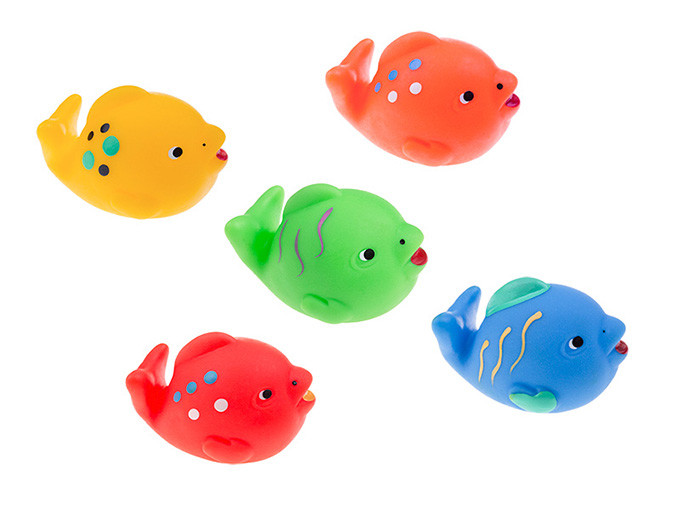 A játékok mérete és formája jól illeszkedik a kis kezekhez. A különböző színek és formák természetes módon ösztönzik a játékot a fürdés során. A fürdőhalak belsejébe nem jut víz, ezért a gyermekek csak a külső felülettel érintkeznek. Színes megjelenésük játékra ösztönöz, a fürdés pedig így élményszerűbbé válik.