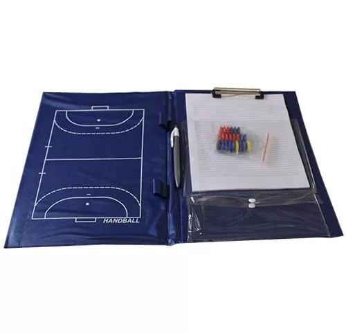 A taktikai tábla, edzői mappa kézilabdához – WINART praktikus eszköz, amely megkönnyíti a taktikai megbeszéléseket és a játékhelyzetek gyors szemléltetését edzéseken és mérkőzéseken egyaránt. Az A/4 méretű, összecsukható mappa mágneses jelző korongokat, tollat és jegyzettömböt tartalmaz, így ideális választás minden kézilabdaedző számára.