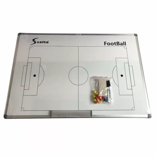 A Salta márkájú, 60×90 cm-es futball taktikai tábla ideális választás edzők és csapatok számára, akik vizuálisan szeretnék bemutatni a stratégiákat edzések vagy mérkőzések előtt. A táblához tartozik alkoholos filctoll és többféle mágneses jelölő, melyekkel a pályán történő mozgásokat és pozíciókat pontosan lehet modellezni. A mágneses, filccel írható és törölhető felület lehetővé teszi a taktikai tervek gyors, átlátható megjelenítését. A tábla könnyen falra akasztható, és mérete miatt jól látható minden játékos számára. Remek eszköz stratégiaalkotáshoz, meccsek előtti felkészítéshez és edzések hatékonyságának növeléséhez.