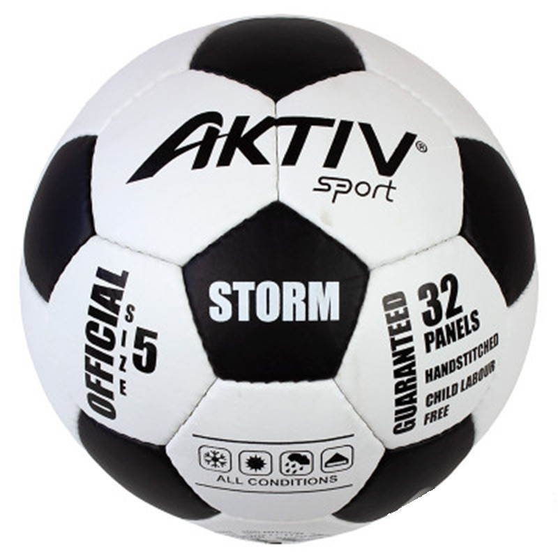 Az Aktivsport Storm 5-ös méretű futball labda hosszú élettartamra tervezett, rugalmas, matt felületű poliuretán borítással készül. A magas kopásállóságú anyag négy rétegű, keresztbe ragasztott textil alábéleléssel párosul, amely hozzájárulhat a forma- és körmérettartáshoz. A labda belső része 70–75 gramm súlyú latex, butyl biztonsági szeleppel. A fonal kevertszálú, sodrott, waxolt poliészter, amely a vízfelvétel mérséklésére lett kialakítva. A labda 32 panelből áll, kézzel varrott szerkezettel. Kialakítása lehetővé teszi használatát különböző pályatípusokon, mint például beton, salak, fű, műfű és beltéri felületek, akár változatos időjárási körülmények között is. Csapatok és iskolák részére is ajánlott edzőlabda.