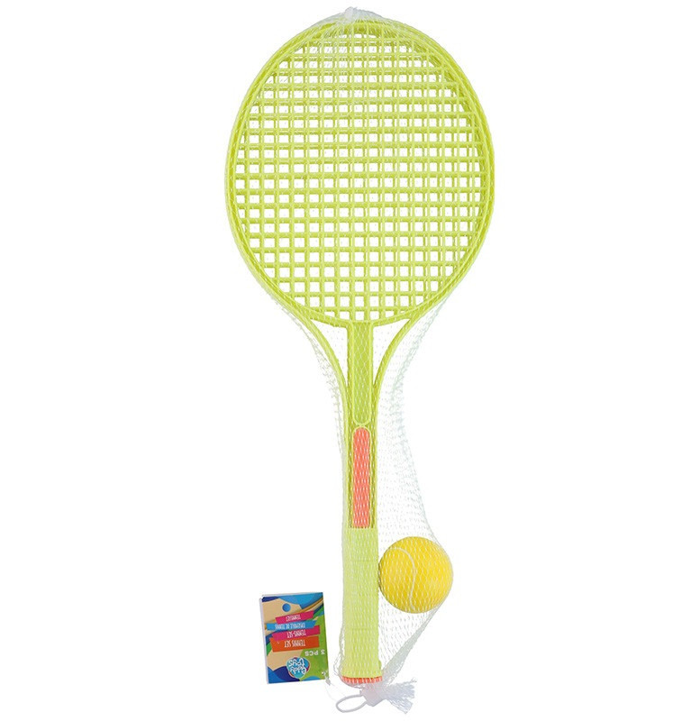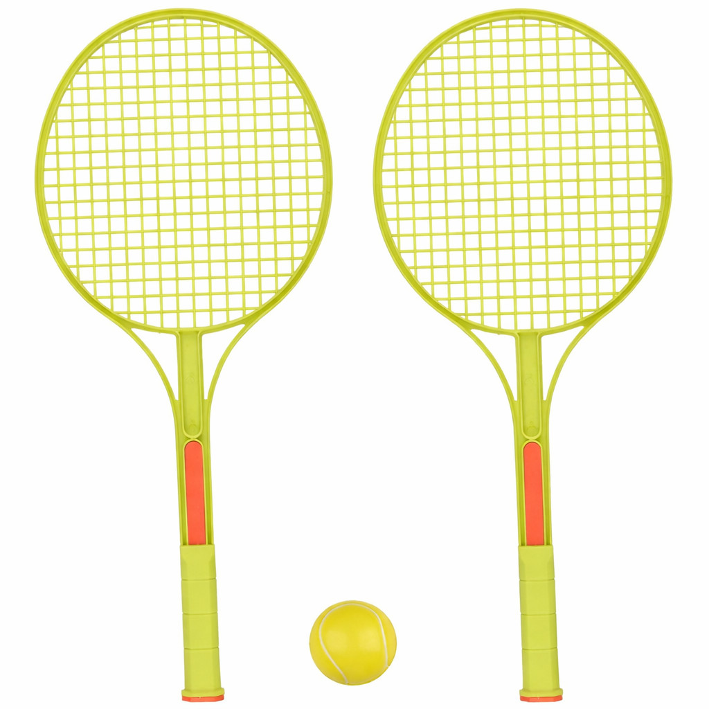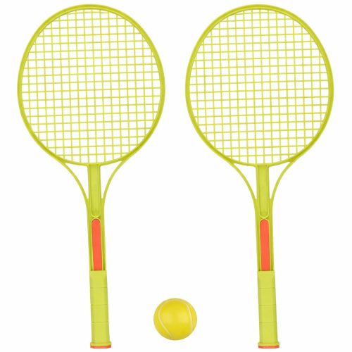 Ez a zöld színű teniszütő szett gyerekek számára készült. A csomag két ütőt és egy labdát tartalmaz, így azonnal használható egyszerű ütős játékokhoz. A labdával és az ütőkkel különféle játékos feladatok próbálhatók ki. Az ilyen jellegű mozgásos tevékenységek hozzájárulhatnak a szem–kéz koordináció gyakorlásához és a mozgás örömének megtapasztalásához. A szett nyári szabadtéri játékokhoz és sportos tevékenységekhez is használható.