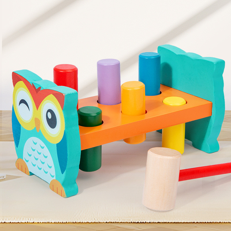 Ez a vidám, bagoly mintás kalapáló pad kiváló választás lehet a finommotorikus készségek játékos fejlesztéséhez. A gyermek feladata, hogy a színes hengereket a megfelelő nyílásokba helyezze, majd kalapáccsal leüsse őket. A hengerek a másik oldalon kiemelkednek, így a játék bármikor újrakezdhető.