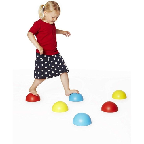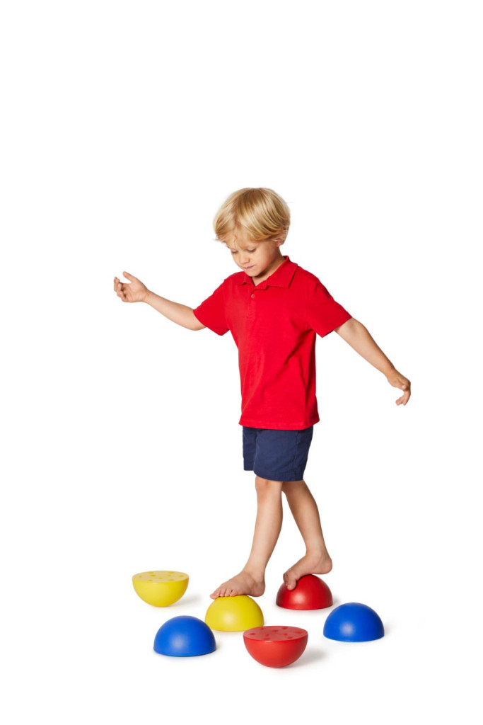• Egyensúly és koordináció: A félgömbök különböző magassága és felülete kihívást jelent a gyermekek számára, miközben fejleszti testtudatukat és koordinációs képességeiket.