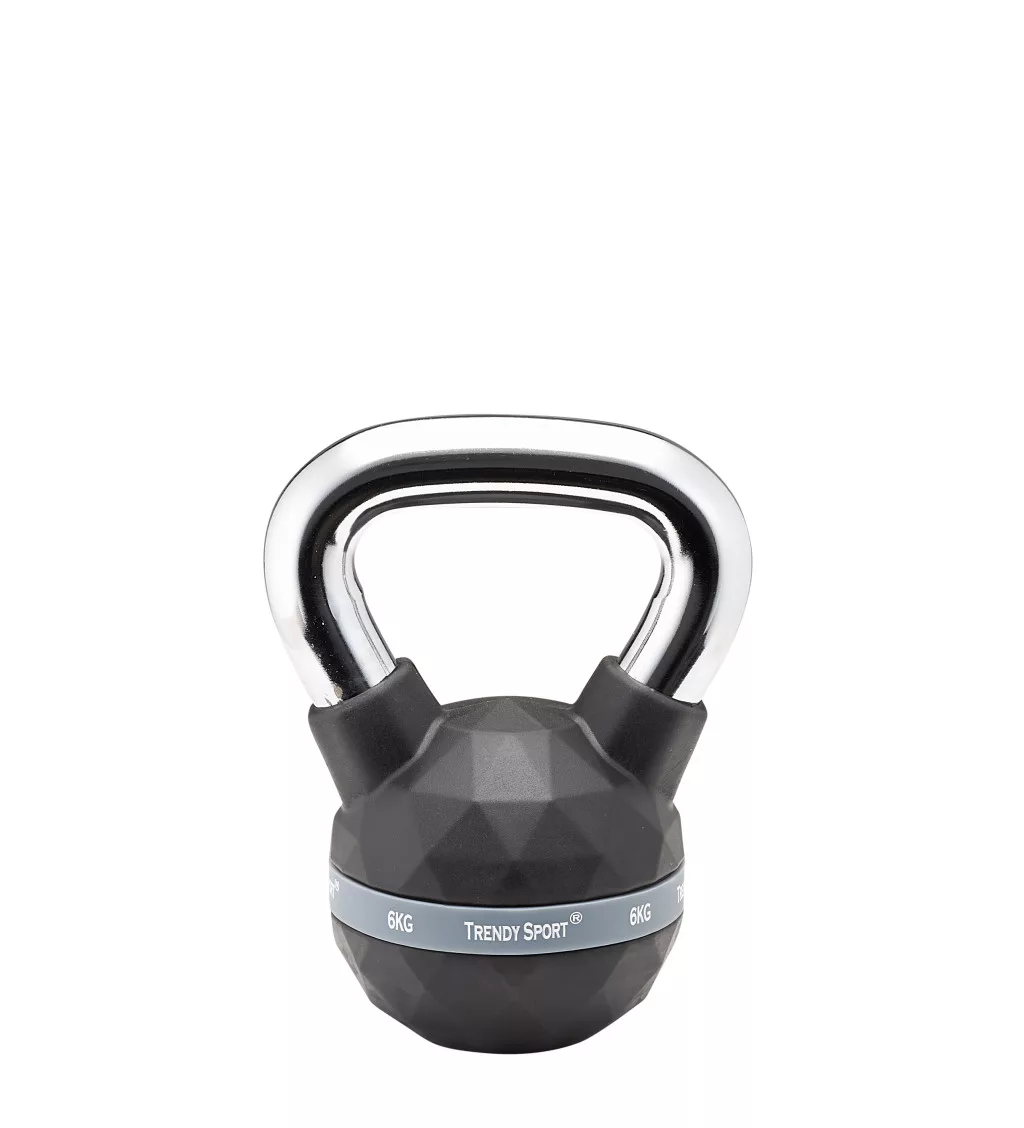 Kettlebell, füles súlyzó, fekete-króm, 6 kg, Trendy Premium