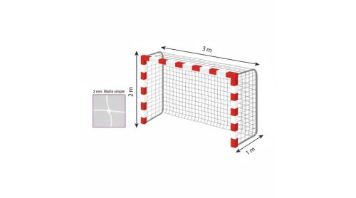 Ez a kapuháló kül- és beltéri használatra is alkalmas kialakítással készült. A 2 mm-es polietilén sodrony megfelelő tartást biztosít, miközben a 12 cm-es lyukbőség a kézilabdakapuknál megszokott hálókialakítást követi. A háló 3 × 2 méteres kapumérethez illeszkedik, az alsó és felső 1 méteres mélység pedig lehetővé teszi, hogy a labdák biztonságosan megakadjanak a hálóban.