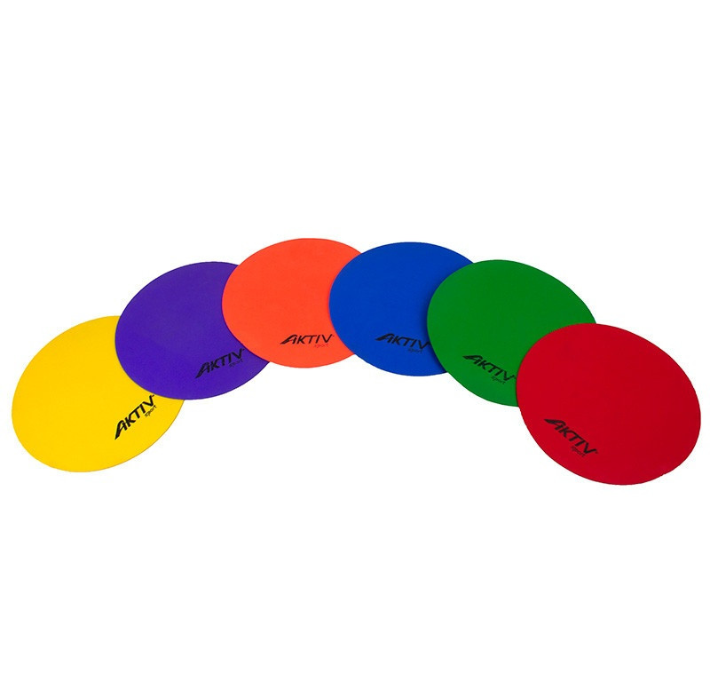 Az Aktivsport korong alakú padlójelölő szett 6 darab, egyenként 25 cm átmérőjű gumialapú jelölőkorongból áll, amelyek különféle pályák és mozgásos feladatok kialakításához használhatók.