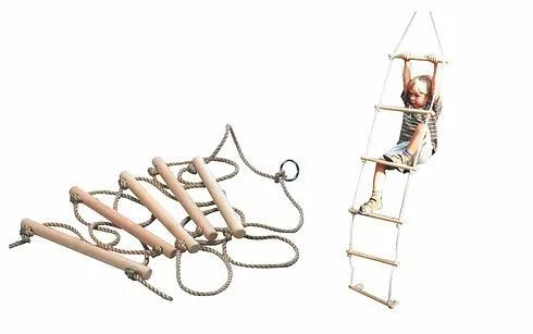 Ez az 5 fokos, 2 méter hosszú PRO-Sport kötéllétra kiváló kiegészítő mászáshoz és aktív játékhoz, strapabíró fa fokokkal és erős kötélszállal.