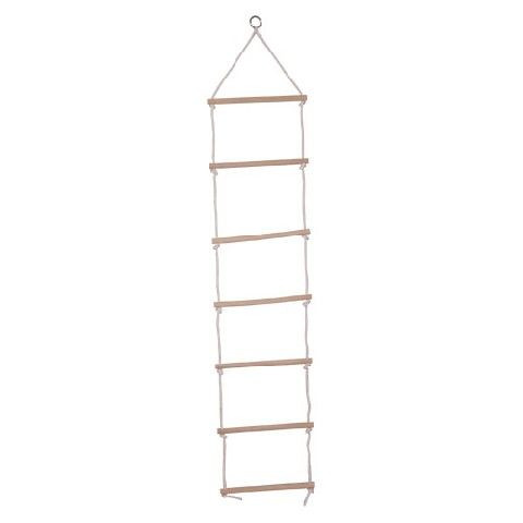Ez a 3 méteres fa kötéllétra 9 darab, 31 cm hosszúságú és 20 mm vastagságú masszív fa fokkal készült, amelyek stabil fogást biztosítanak mászás közben. A színes PPtex kötél tartós és vizuálisan is figyelemfelkeltő, hozzájárulhat a játékélmény fokozásához. A létra akár 3,5 méteres magasságig is felfüggeszthető, így jól illeszkedik különböző magasságú környezetekbe.