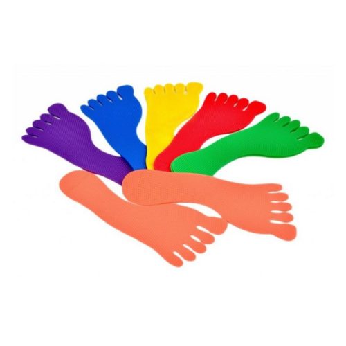 A láb alakú padlójelölő szettet elsősorban különböző mozgásfejlesztő és koordinációt javító sportos gyakorlatok során használják.