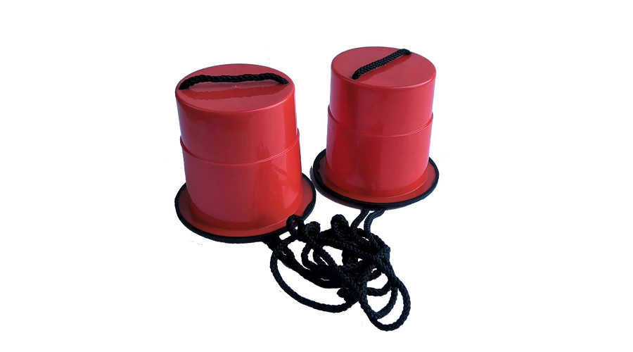 A PRO-Sport lépegető henger párban, 10 cm átmérővel és 140 cm hosszú kötéllel készült, egyensúlyfejlesztő mozgáshoz.