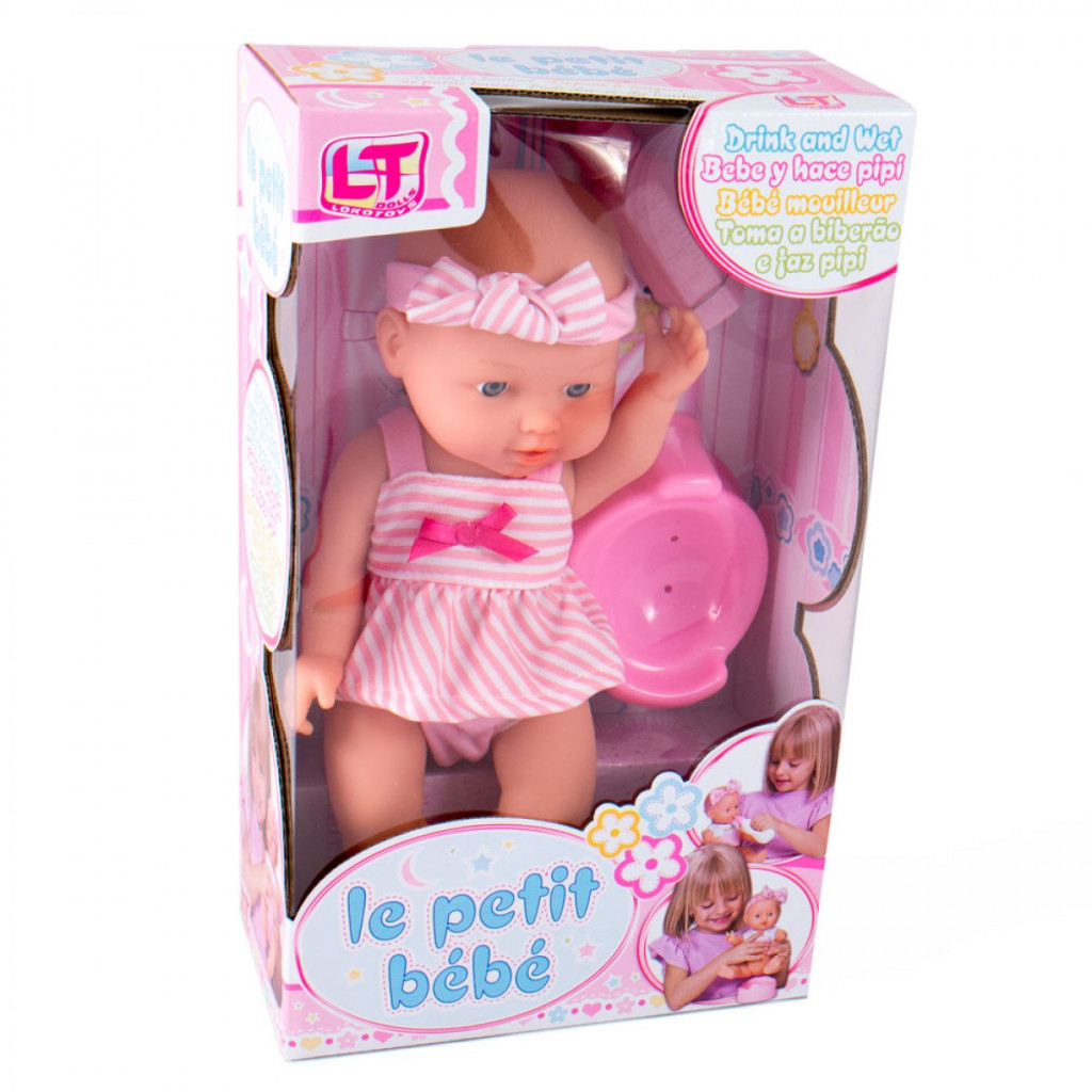 Loko pisilő baba bilivel és cumisüveggel, 28 cm
