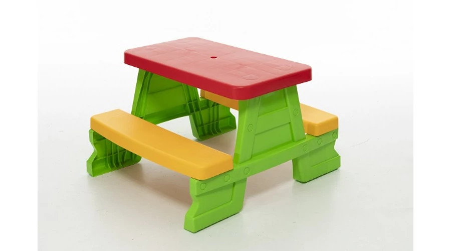 A DOREX Piknik asztal egy vidám, színes és praktikus választás a gyermekek számára, mely ideális kiegészítője a szabadtéri és beltéri játékoknak egyaránt. Ez a strapabíró, könnyen tisztítható asztal kiváló minőségű műanyagból készült, és különösen jól használható uzsonnázáshoz, kreatív tevékenységekhez, vagy játékhoz. Az asztal közepén található napernyőnek kialakított lyuk segít megvédeni a gyerekeket a napfénytől, így még kényelmesebbé téve a szabadtéri játékokat.