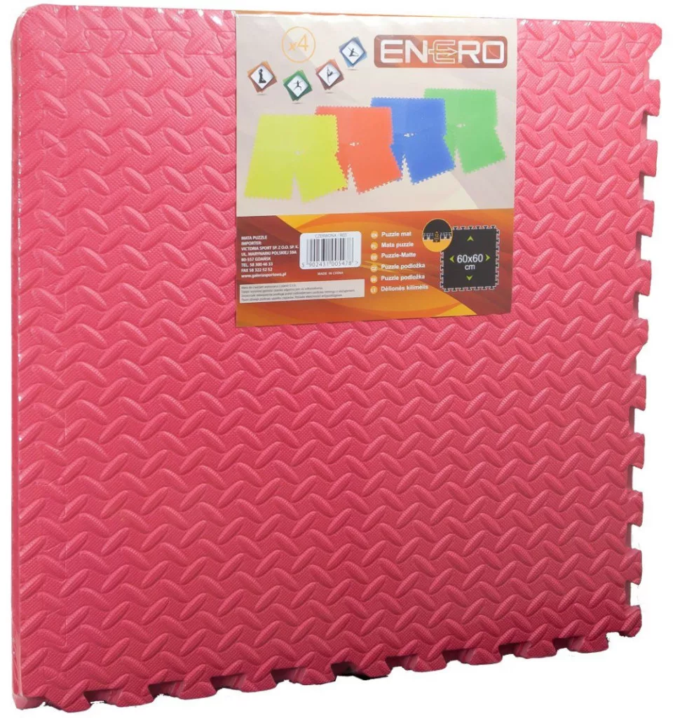 Ez a 4 darabos, piros ENERO Fit puzzle fitnesz szőnyeg tartós EVA habból készült, és ideális alapot nyújthat saját otthoni edzősarok kialakításához.