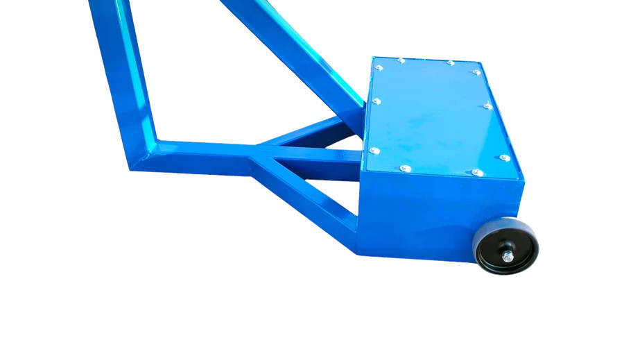 Masszív, gurítható röplabda állvány ellensúlyos kialakítással.