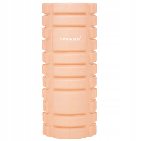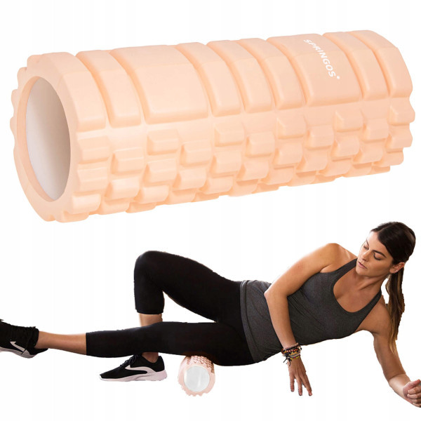 A Springos 33x14 cm-es barack színű SMR masszázs henger praktikus eszköz edzés előtti bemelegítéshez, nyújtáshoz és rehabilitációs gyakorlatokhoz.