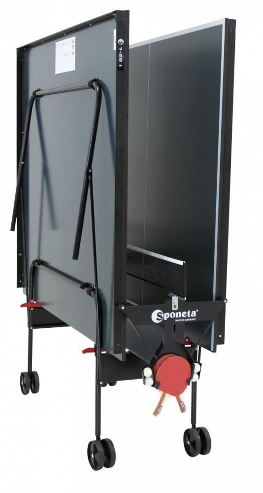 Az asztal mozgathatóságát 4 dupla kerék segíti, amelyek közül kettő elforgó kialakítású, így könnyedén áthelyezhető. Használaton kívül kompakt méretűre összecsukható, így kis helyen is tárolható. A könnyen kezelhető nyitó/záró fogantyú, a beépített ütő- és labdatartó, valamint a hálószett mind a kényelmes használatot szolgálják.