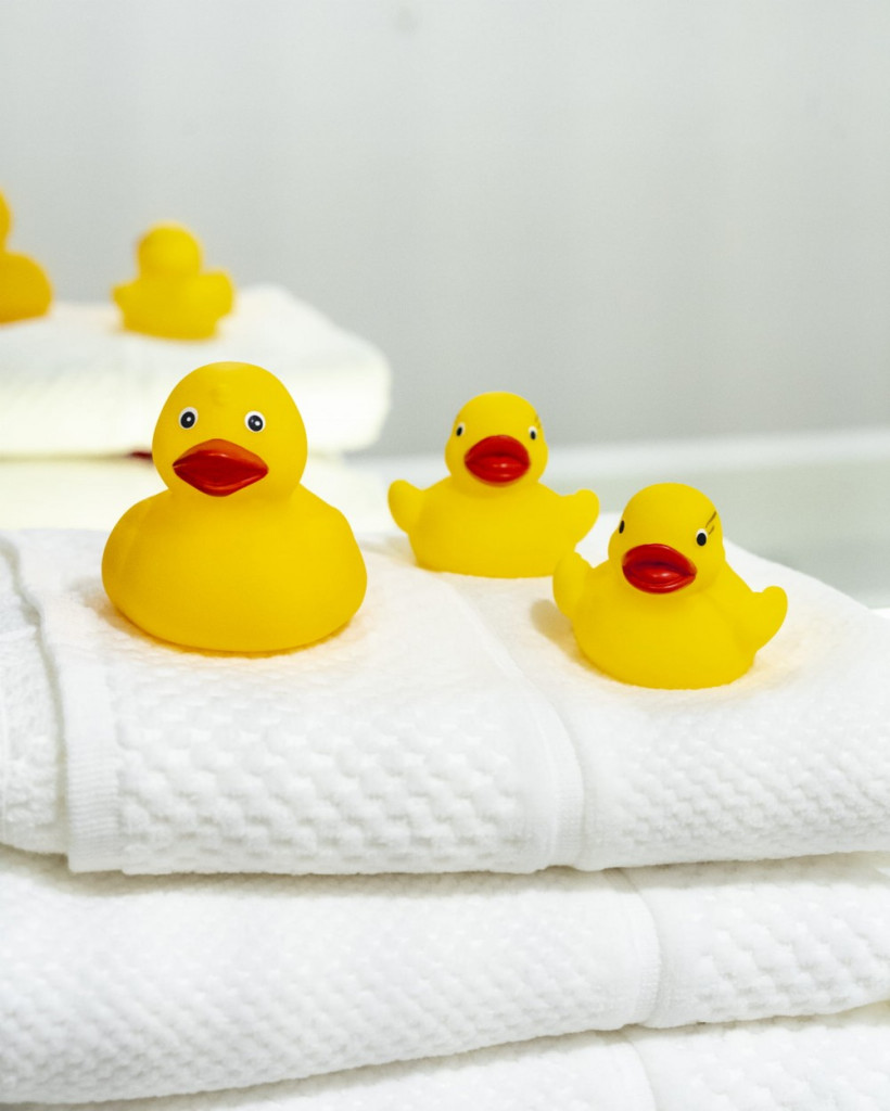 A TULLO gumikacsa család három aranyos, lyuk nélküli fürdőkacsából áll, amelyek biztonságos és higiénikus szórakozást nyújtanak a pancsolás során.