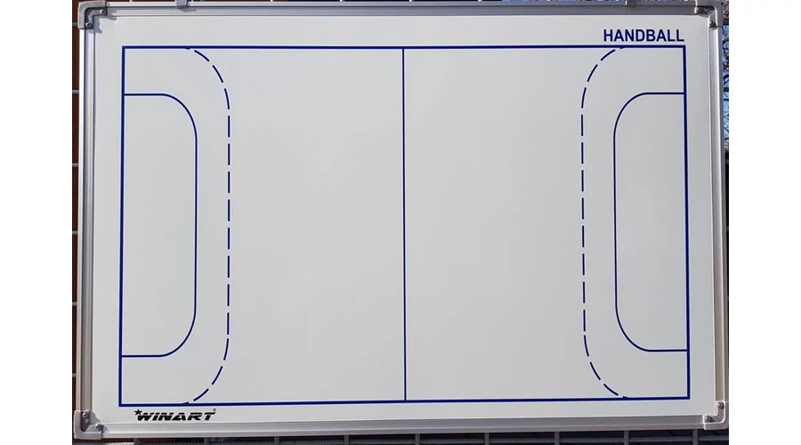 A WINART 90×60 cm-es kézilabda taktikai táblája hatékony segítség az edzőknek a játékszituációk, támadási és védekezési formációk szemléltetésében. A nagyméretű, jól látható tábla ideális edzésekhez, meccs előtti taktikai megbeszélésekhez, vagy oktatási célú felhasználásra iskolákban és egyesületekben. A tábla kézilabdapályát ábrázoló, írható és törölhető felülettel rendelkezik, így a táblafilccel egyszerűen lehet rajzolni és jegyzetelni a kívánt mozgásokat vagy stratégiákat. A csomag tartalmaz mágneses játékosfigurákat is, melyekkel a csapatok helyzete és mozgása vizuálisan is könnyen követhető. A stabil kivitel falra szerelhető, de asztali használatra is alkalmas. Ez a professzionális taktikai tábla hozzájárulhat a jobb csapatkommunikációhoz és az átláthatóbb edzői iránymutatáshoz.