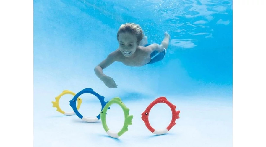 Merülő halacskás karikák, 4 db – vízi ügyességi játék gyerekeknek – Intex 55507
